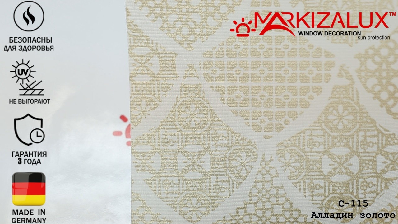 Рулонные шторы Aladdin Gold с арабским рисунком — это стильный и современный способ придать вашему окну нотку арабского колорита. Эти жалюзи имеют традиционный, но современный рисунок в ярких золотых тонах, который привнесет элегантность и изысканность в любую комнату. Жалюзи Aladdin Gold доступны как с затемнением, так и со светофильтром, чтобы удовлетворить ваши потребности. Они просты в установке и обслуживании, что делает их идеальным выбором для любого дома или офиса.