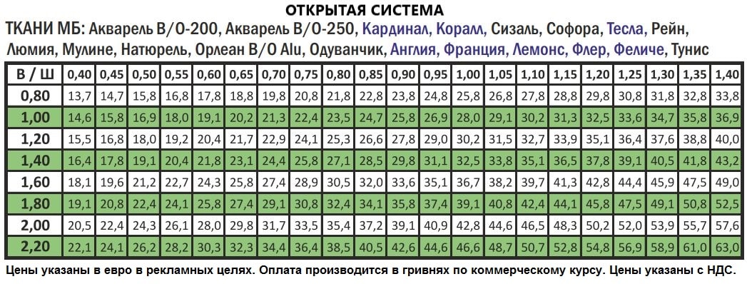 Стоимость шторы в системе Эльф-19 (ш/в) – 400/800 мм