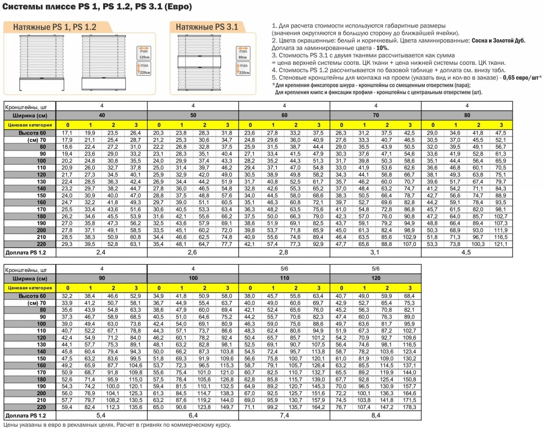 Стоимость шторы в системе плиссе (ш/в) – 400/600 мм